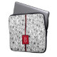 Hand Drawn Floral White Black Pattern and Monogram Laptop Sleeve