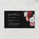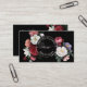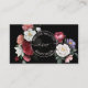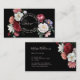 This elegant business card features hand drawn vintage roses in blush pink, white and purple on a black background.