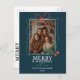 Hand-drawn frame modern teal blue Merry Christmas Holiday Postcard