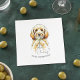 Cheers to another year older! Celebrate the occasion with this custom hand drawn golden doodle martini cocktail napkin. This design features watercolor painted illustration of a golden doodle holding a dirty martini glass with the option to personalise the text.