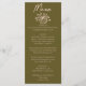 A colorful retro funky modern grasslands green and sweat cream floral wedding dinner menu. Which features chic template design of boho vintage green background on the front and back. With cream whimsical typography and hand drawn floral bouquet. Perfect and matching with the whole suite.