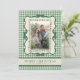 Send warm holiday wishes wrapped in timeless charm with this Christmas photo card. Featuring a cozy green gingham background, playful hand-drawn ribbon frame, and space for your favorite family photo, this card perfectly blends country farmhouse style with vintage Christmas elegance.