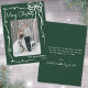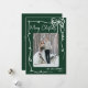 Send holiday cheer with this vertical Christmas card design. The front features a vertical photo in the center, framed by a swirling ribbon-style doodle border. A cute hand-drawn coquette bow sits in the top right corner, while “Merry Christmas” appears in handwritten script at the top left. The bottom right includes space for your family’s last name or individual names, along with the year. The background is a deep emerald green, with all doodle art and fonts in white for a clean, festive contrast.