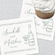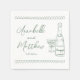Personalised Hand Drawn Champagne Whimsical Wedding Napkins. This personalised wedding cocktail napkin features a charming and minimalist design, perfect for adding a special touch to your celebration. A delicate illustration of a champagne bottle and glass is prominently displayed, symbolising the festive occasion. The bride and groom's names and wedding date are elegantly showcased beneath the artwork in a mix of handwritten script and simple font, creating a stylish yet approachable look. Styled in a soft sage green and white palette with subtle European-inspired charm, this design adds an extra layer of relaxed elegance.