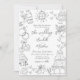 European Inspired Grey Hand-Drawn Quirky Sketches Whimsical Wedding Invitation. Perfect for couples seeking a creative, lighthearted touch with a European flair, this playful design stands out with a dynamic arrangement of large hand-drawn illustrations surrounding the text and flowing off the edges for an artistic and modern look. Styled in a refined grey palette, the design exudes a sense of personal charm while maintaining an elegant European touch.