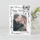 Send holiday cheer with this vertical Christmas card design. The front features a vertical photo in the centre, framed by a swirling ribbon-style doodle border. A cute hand-drawn coquette bow sits in the top right corner, while “Merry Christmas” appears in a handwritten script at the top left. The bottom right includes space for your family’s last name or individual names, along with the year. The background is white, with the doodle art and fonts in black for a fun retro look.