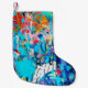Hand drawn modern Multi Coloured mixed media art Small Christmas Stocking