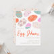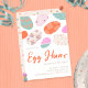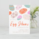 This is a fun art piece of a grouping of Easter eggs. The digitally drawn eggs are filled with an assortment of nature and abstract elements in pink green and orange.