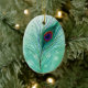 Hand drawn Peacock Feathers Personalised Ceramic Tree Decoration