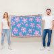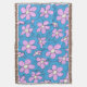 Hand Drawn Pink and Blue Flower Design Throw Blanket