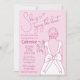 Hand Drawn Pink Bow Wedding Gown Bridal Shower Invitation