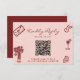A simple and elegant calligraphy colorful retro QR Code wedding rsvp card. As you see it has a vintage modern pink background with burgundy hand written script and deep red hand painted elements. And customizable QR code on the front. You can edit it by clicking on the personalize button.
