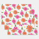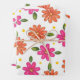 Hand Drawn Pink, Orange Flowers Wrapping Paper Sheet