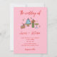Hand Drawn Funky Pink Retro Whimsical all in one Wedding Invitation. This unique invitation features unique author's illustrations, made specifically for this wedding collection. Put your favourite photo on the back.