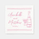 Personalised Hand Drawn Champagne Whimsical Wedding Napkins. This personalised wedding cocktail napkin features a charming and minimalist design, perfect for adding a special touch to your celebration. A delicate illustration of a champagne bottle and glass is prominently displayed in a cute, happy light pink, symbolising the festive occasion. The bride and groom's names and wedding date are elegantly showcased beneath the artwork in a mix of handwritten script and simple font, creating a stylish yet approachable look. Styled in a timeless light pink and white palette reminiscent of Italian, French, and European aesthetics, this design adds an extra layer of softness and charm.
