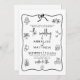 Hand Drawn Quirky Whimsical Wedding Invitation. This playful and artistic wedding invitation is ideal for couples who want to bring a creative, lighthearted vibe to their celebration. Featuring a classic black-and-white colour scheme, it feels like a charming, hand-drawn creation with a personal touch. A wavy frame tied with a delicate bow at the top highlights your wedding details, styled in a mix of script and handwritten fonts for a casual yet elegant look.