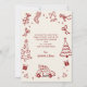 Hand-Drawn Red Doodle Arch Photo Christmas Happy Holiday Card. Add a touch of festive charm to your holiday greetings with this adorable hand-drawn scribble Christmas photo card. The front features cute, playful maroon-red Christmas motifs and bows arranged around an arch-shaped family photo, paired with a cheerful Happy Holiday script and your family name — all set against a soft ivory or cream off-white background. The back includes coordinating hand-drawn Christmas motifs — and at the bottom a cute whimsical car carrying a Christmas tree — along with a template for your custom holiday greeting message.
