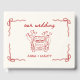 Capture every heartfelt message and memory from your special day with this hand-illustrated wedding guest book, designed to match a vintage-inspired aesthetic. In a rich, vibrant red, this guest book exudes charm and whimsy with its hand-drawn details, including a delightful wavy frame and a bow illustration at the top. Each page invites guests to leave their well-wishes in a design that’s both artistic and timeless.
