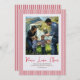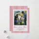 Celebrate the magic of the season with this charming red striped holiday photo card, featuring the heartfelt message "Peace, Love, Cheer." With candy cane-inspired borders and space for your favourite family photo, this card is a festive way to send warm wishes to loved ones near and far.
