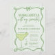 Vintage style "margaritas with my senoritas" bridal shower design with hand-drawn ribbon and bow frame with a margarita cocktail glass in lime green colours.