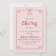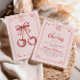 Hand Drawn Retro Pink Cherry Bow Bridal Shower Invitation
