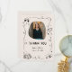 A whimsical graduation thank you card. Featuring a hand-drawn, quirky graduation cap, diploma, stack of books, champagne glasses, doodled frame, and handwritten text. The text "THANK YOU" is not editable, but all of the other text is editable. You can also change the colours. On the back of the thank you card is space for a longer message expressing your gratitude. If you need a different heading or other changes, please feel free to contact me.