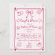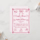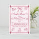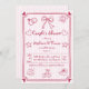 Hand drawn pink and white scribble whimsical retro French style wedding couple's shower Invitation. Invite your loved ones to a joyful celebration with this whimsical, retro French style wedding shower invitation. Hand-drawn in pink and white, the design features playful magenta scribbles of hearts, a ring, and a bow on a light pink and white striped backdrop. The handwritten font and heart-adorned frame contribute to the delightful and exciting feel, setting the perfect tone for a memorable shower.