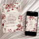 Whimsical red and cream wedding invitations with trendy hand-drawn doodles are a charming and creative way to invite guests to a celebration filled with love, laughter, and good food. Featuring deep red scribble style line art on a soft cream background, this playful design includes doodles of floral arrangements, wedding rings, champagne bottles, wine glasses, cake, candles, and a dinner table—perfectly capturing the spirit of a reception-focused wedding. The casual handwritten fonts keep the layout stylish yet approachable, allowing all the key event details to stand out clearly. Ideal for couples planning a relaxed yet refined celebration with dinner and dancing, this invitation works beautifully for garden weddings, urban receptions, or restaurant-style events. The illustrated elements add a unique, storybook quality that makes your invite feel personal and fun while still maintaining a sense of elegance. This customizable design is perfect for those who want to set a warm, festive tone for their wedding day. Available as printed cards or instant digital download.