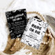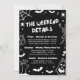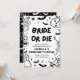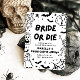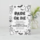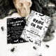 This gothic black & white Halloween bachelorette party invitation features edgy hand-drawn skeletons, spooky details, and hauntingly cute illustrations — bats, cobwebs, ghosts, and more 🕸️🦇.