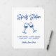 Designed in a cheerful blue-and-white palette with hand-drawn clinking wine glasses and an easy spritz recipe, this sign is perfect for guiding guests to your signature drink station while keeping the look fresh, modern, and relaxed.