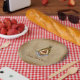 Hand Drawn Square and Compass With All Seeing Eye Paper Plate