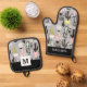 Hand Drawn Textured Cactus Pattern Oven Mitt & Pot Holder Set