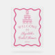 Simple bridal shower design with hand-drawn, playful retro-style wavy frame with a champagne flute tower with bows, in dark and light pink colours.