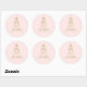A clean, professional, and modern packaging sticker for cake designers and dessert bar stylists. This design features a whimsical hand drawn image of a three tiered cake in faux gold and business details in faux gold, against a blush pink background.