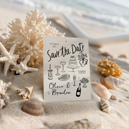 Hand-drawn whimsical line art wedding style invitation