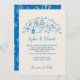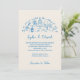 This elegant yet playful design showcases delicate fun bright blue ink line illustrations — including cake, candles, wine, florals, and celebratory details — arranged in a soft, airy layout that feels personal, timeless, and joyful. Perfect for couples looking for a wedding invitation that is artistic, modern, and full of character without feeling overly formal.