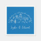 This elegant yet playful design showcases delicate fun bright blue ink line illustrations — including cake, candles, wine, florals, and celebratory details — arranged in a soft, airy layout that feels personal, timeless, and joyful. Perfect for couples looking for a wedding invitation that is artistic, modern, and full of character without feeling overly formal.