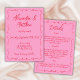 Capture the essence of your special day with our wedding invitation. Featuring a charming hand-drawn frame and elegant hand-lettered font, this bold pink and red design exudes a whimsical and minimalist vibe. Perfect for modern couples seeking a unique touch. Include accommodation and reception details seamlessly. Elevate your wedding planning with this trendy and funky invitation that will surely impress your guests. Make your wedding unforgettable with stylish and customisable invitation suite. Order now and add a touch of magic to your big day!