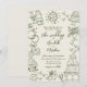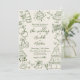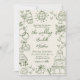 Vintage-Inspired Hand-Drawn Quirky Sketches Whimsical Wedding Invitation. Perfect for couples seeking a creative, lighthearted touch with a nostalgic twist, this playful design features an ivory background with olive green fonts and hand-drawn artwork, creating a soft retro look that feels perfect for an Italian or European-inspired celebration. The dynamic arrangement of large illustrations flows off the edges, giving the layout an artistic, modern feel with a hint of old-world charm.