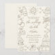 Vintage-Inspired Hand-Drawn Quirky Sketches Whimsical Wedding Invitation. Perfect for couples seeking a creative, lighthearted touch with a nostalgic twist, this refined design features a soft ivory background paired with tan artwork and lettering for an elegant, muted look. The warm neutral palette gives the invitation a timeless, understated vintage feel.