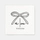 Personalised Hand Drawn Bow Whimsical Wedding Monogram Napkins. These personalised wedding cocktail napkins feature a clean and elegant design, perfect for adding a subtle touch of sophistication to your celebration. At the centre, a simple hand-drawn bow is beautifully paired with the bride and groom's initials and wedding date, creating a timeless and understated look.