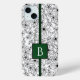Hand Drawn White Floral Pattern and Green Monogram Case-Mate iPhone Case