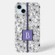 Hand Drawn White Floral Pattern Purple Monogram Case-Mate iPhone Case