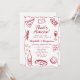 Whimsical and hand-drawn, this retro-style party design features a classic wine red color, a playful wavy frame, and illustrations of Italian-themed cuisine. Paired with elegant hand-lettered fonts, this design is perfect for adding a touch of vintage flair to your event. Ideal for rehearsal dinners, couple’s showers, or bridal showers—especially those with a pizza or pasta party theme.