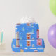 Hand drawn winter seamless pattern with cute Scandinavian houses,trees,snow,snow banks on blue background.