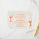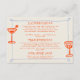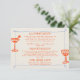 Simple and stylish retro colourful orange blue wedding guest info details. As you see it has creamy background and orange hand written whimsical text layout. And orange painted champagne and cocktail glasses . With hand drawn blue frame. All the info are customisable as website, transportation, accommodation . Grab it along with other products from this classy hand made retro wedding suite.