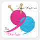 Cute stickers with a picture of two balls of knitting wool and wooden knitting needles poking through them. Ideal for all those craft people who love to knit with text reading Hand knitted by, and easy to customise with a personal name.