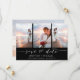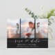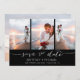 Pick the best pictures from your engagement shoot or your favourite pictures of the two of you for this perfect save the date. The words save the date are handwritten to give a personal feel to the card. The front has 3 images and the back has a large image with a white filter on top.