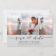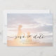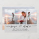 Pick the best pictures from your engagement shoot or your favourite pictures of the two of you for this perfect save the date. The words save the date are handwritten to give a personal feel to the card. The front has 3 images and the back has a large image with a white filter on top.