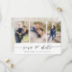 Pick the best pictures from your engagement shoot or your favourite pictures of the two of you for this perfect save the date. The words save the date are handwritten to give a personal feel to the card. The front has 3 images and the back has a large image with a white filter on top. Edit this save the date wedding card with your information and customise it for further for font and font colour options.